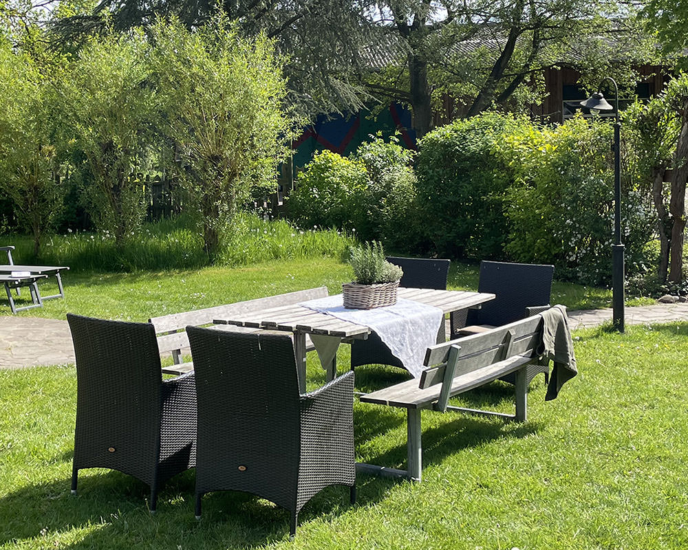 Genieße sonnige Stunden im 400 qm großen Landhausgarten und entdecke mit Deinen Kindern den weitläufigen Hof mit Spielplatz, Strohburg oder Froschteich. Auch Dein Hund ist hier herzlich willkommen. Im Haus „Gartenvilla“ befindet sich auch unser Büro. Dies ist aber mit einer eigenen Auffahrt versehen und selbstverständlich achten wir die Privatsphäre unserer Gäste.