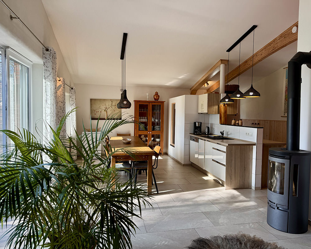 Die nachhaltige Bauweise mit Lehmputz im Innenbereich, Stromversorgung durch die hofeigene PV-Anlage und Wärmeversorgung aus nachwachsenden Rohstoffen sorgt für einen umweltverträglichen Urlaub. Die ruhige Lage in der Natur und die Nähe zu Hamburg machen diese Ferienwohnung zum idealen Ort für Erholung und gemeinsame Erlebnisse.