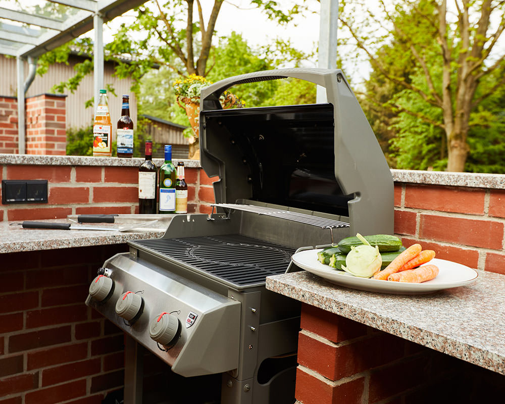 voll ausgestattete Wohnküche & überdachte Terrasse mit Weber-Gasgrill